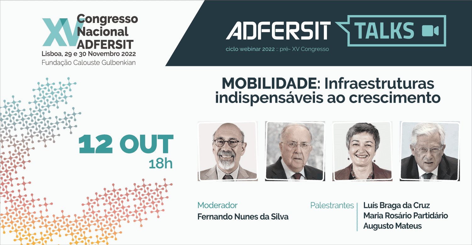 No âmbito da preparação do XV Congresso Nacional, a ADFESIT realizou um primeiro webinar no dia 12 de Outubro, sob o tema “MOBILIDADE: Infraestruturas indispensáveis ao crescimento”.