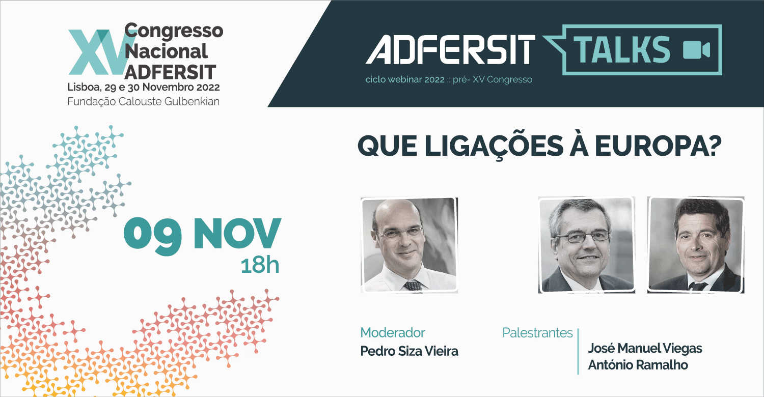 No âmbito da preparação do XV Congresso Nacional, a ADFESIT irá realizar o segundo webinar no dia 09 de Novembro, sob o tema “QUE LIGAÇÕES À EUROPA?”.